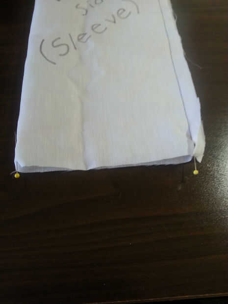 Una vez que tengas la costura bajo el brazo en la manga cosida (con derecho) no gire it...leave mal lado (interior) hacia fuera. Si desea agregar un puño a una prenda que ya está terminada vuelva el manga.
