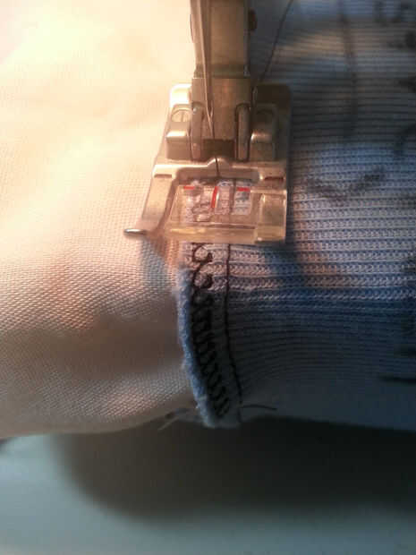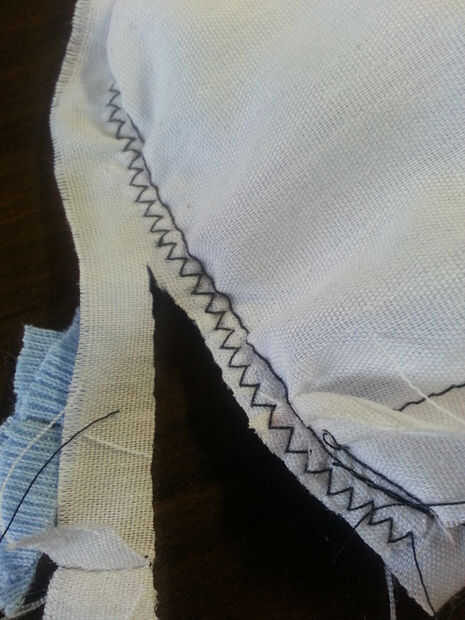 Usted puede terminar la costura con una puntada en zigzag o con otra puntada (dependiendo de qué puntadas hace su máquina) (fotografía 2 muestra 2 puntadas diferentes) puntadas cerca de la línea de costura original.
