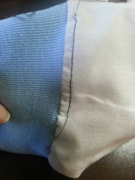 Usted puede coser la parte superior el margen de costura hacia el lado de la manga (usando una puntada más larga). Cuadro #1
