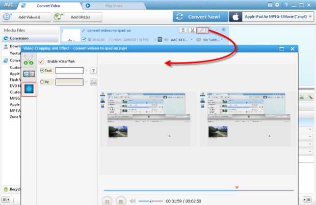 Paso 2: Haga clic en botón de "Añadir efectos" y seleccionar "Video marca de agua"