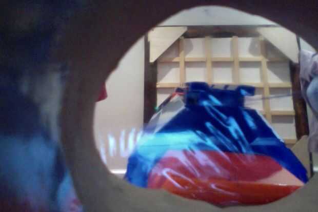 Primero Envuelva la clingfuel sobre el rodillo de tocador como se muestra en la fotografía. Luego cinta adhesiva firmemente. Dibuja la dirección del viento y la Cruz en medio de la envoltura se aferran y circulan por la clingfuel con su marcador. Verde y amarillo va a salir verde y rojo quedará rojo. Espero que os haya gustado.
