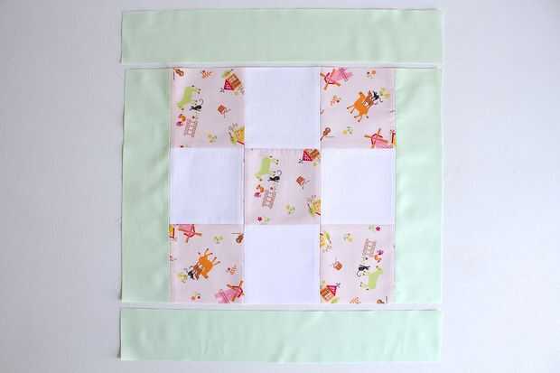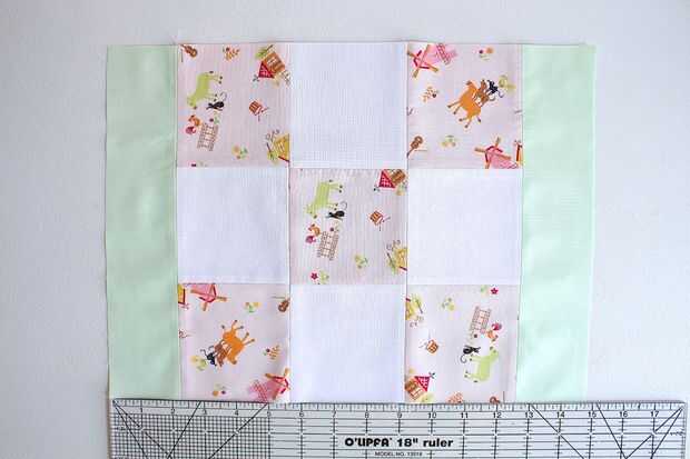 Medida su bloque de tejido ancho - se trata de la longitud de tus franjas. Para un bloque de tejido simétrico, mantener el ancho de la tira lo mismo.