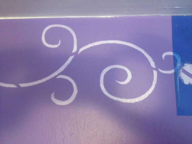 Pelar cuidadosamente la plantilla de la pared sin manchar la pintura húmeda.