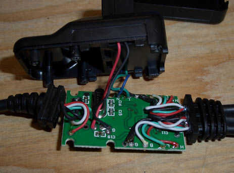 Foto 4: Quite la cubierta superior en cuanto a no rasgar los cables de la placa de circuito, una vez que se aparte mucho suficiente adelante, corte los hilos dejando que usted sabe de qué color es lo de la soldadura de punto