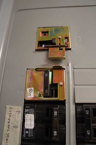 Hay un dispositivo de bloqueo mecánico especial que es físicamente imposible para el interruptor principal y el interruptor que conecta el generador de reserva para estar en el mismo tiempo. Este aparato debe ser instalado. Si no sabes qué haces aquí, es hora de un electricista calificado.