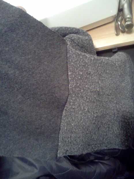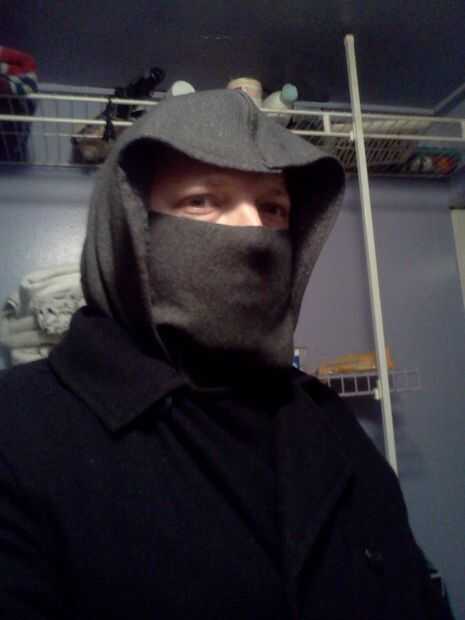 Por último cosí (del interior) un dobladillo a cada uno de los pliegues junto con cada uno de los bordes de la tela; así que si desea utilizar la máscara de la cara se desliza fácilmente sobre mi cabeza y sostiene firmemente en el puente de mi nariz. O puedo doblar hacia atrás y ocultar limpiamente en la campana.
