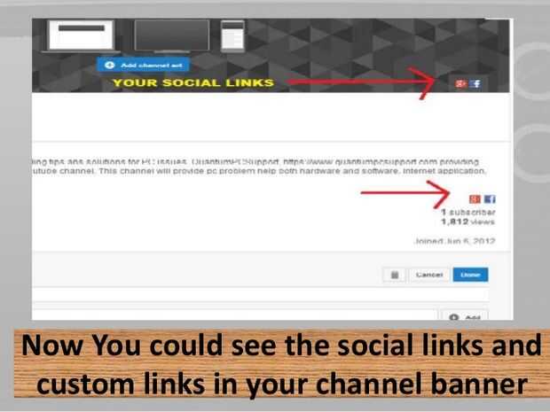 Youtube: costumbre y vínculos sociales en canal de Quantum PC soporte on Vimeo.Cómo agregar vínculos personalizados y social en el canal youtube. Ver el video y hacerlo usted mismo.