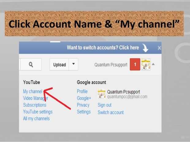 Paso 3: Ahora usted pulsa el nombre de la cuenta y "Mi canal"