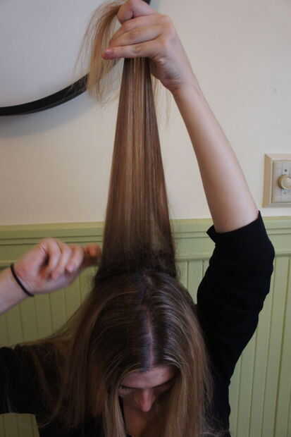 Con un peine, backcomb el pelo en un movimiento hacia abajo hacia el cuero cabelludo.