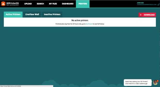 Una vez han aterrizado en la pantalla de "Impresoras", verá un botón de "Download" en la esquina superior derecha de la pantalla. Siga adelante y haga clic en descargar.