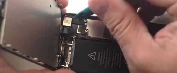Con la herramienta abridor caso, desconecte la batería. Subir tu camino y encontrarás los cables de conexión de la LCD, digitalizador y Asamblea de la cámara de frente. Desconéctelos todos de la conexión de tablero de la lógica.
