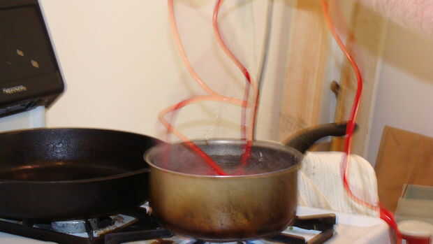 En agua hirviendo, cruce el cable durante 5 segundos. No te la toma o el extremo del alambre mojado. Otros sólo podrían recomendar utilizando pesas y dejar que la caída de alambre por unos días.