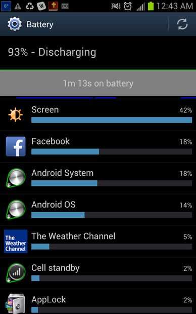 (Batería de ajustes») Si pides Android lo está utilizando qué porcentaje de batería disponible, le dirá. La mayoría del tiempo la mayor potencia del cerdo es la pantalla.
