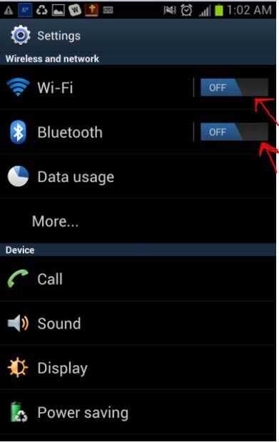 (Configuración» Wi-Fi y Bluetooth) El transmisor inalámbrico de red utiliza un poco de energía. Incluso cuando el dispositivo no está conectado a una red, seguirá buscar uno sobre una base regular. Por las mismas razones que usted debe apagar Wi-Fi, apagar la función Bluetooth Si no la usas.