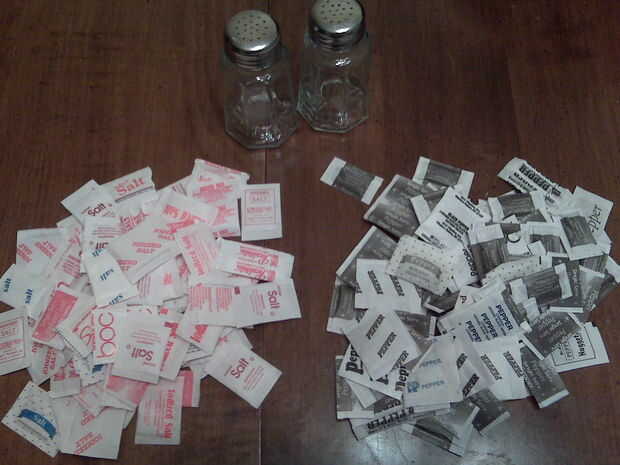 recientemente salimos a comer a un restaurante de comida mexicana, que es un placer para nosotros porque no salimos a comer muy a menudo. Mi esposo llegó para los saleros y pimenteros y vertió algunas sobre su alimento. Exclamó:! "Ahora, estos son a