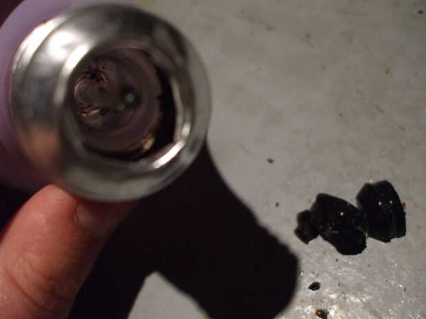 herramienta hice quitar una bombilla atascada de una grifería empotradas en el techo.No hay necesidad de romper la bombilla y utilice pinzas para extraer la base de la bombilla.Corte el extremo de la botella, poner silicona en la circunferencia.Silic