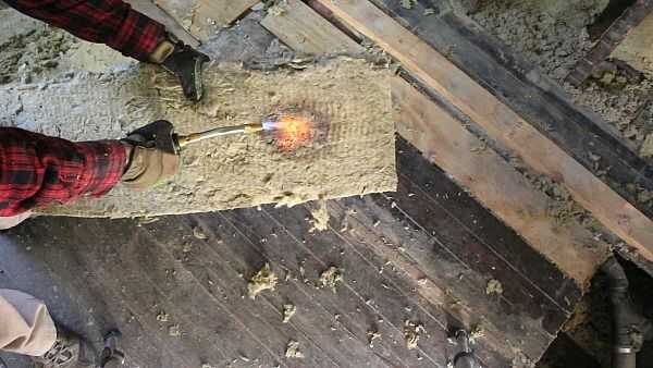 Recuerdas cómo te dije que roxul es resistente al fuego. Decidí probar y prenderla en fuego.