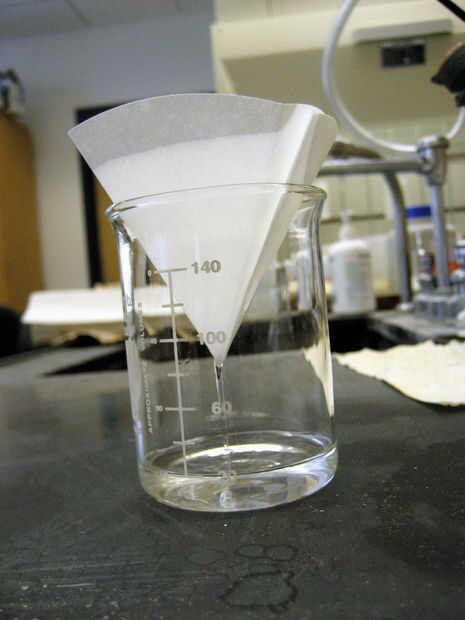Deje que la solución de colocar y retirar cuidadosamente el líquido a través de un pedazo de papel de filtro. Se hará un filtro de café en una pizca.
