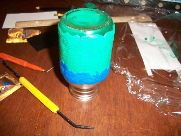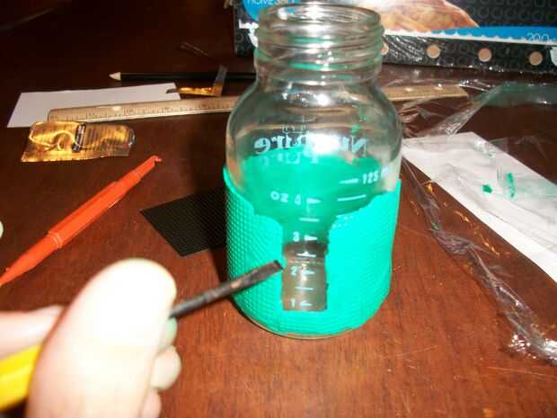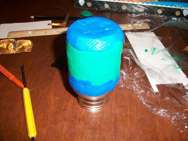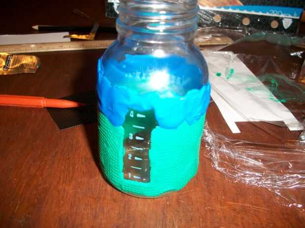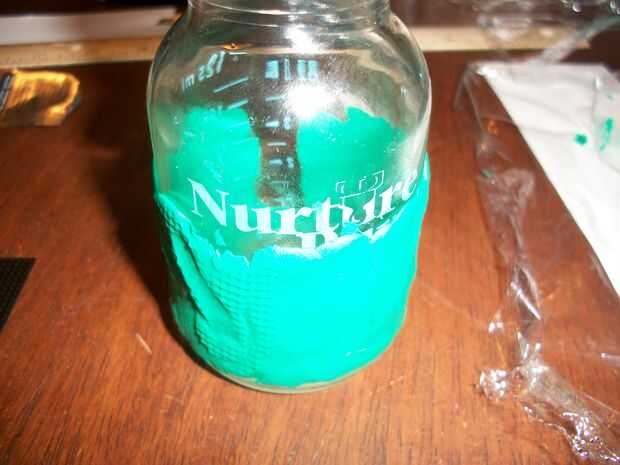 El primer paquete que pongo en la parte superior de la botella. Lanzó una bola de Sugru para presionar a la parte inferior de la botella. Voltea el frasco boca abajo y me aplicó la bola de Sugru. He pulsado en el Sugru alineando los lados.