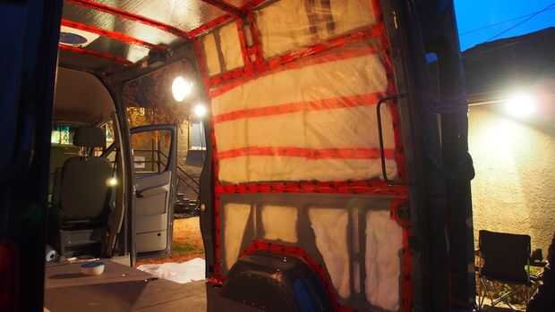 Después de leer varios sitios de blogs e información sobre las conversiones de Sprinter y van, decidimos utilizar el abrigo de burbuja metálica, aislamiento de fibra de vidrio y barrera de vapor de plástico.