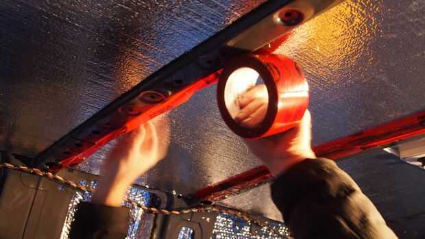 - Uso doble cinta para asegurar las tablas a las costillas.
