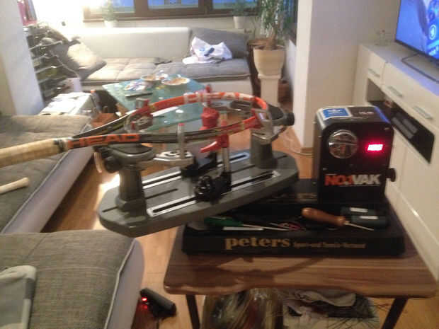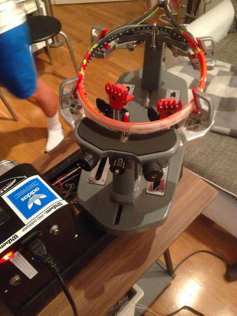 3: estabilizar su marco en la máquina, extrayendo los 4 tornillos principales, que se afloja la máquina, y luego insertar y tirando firmemente la raqueta.