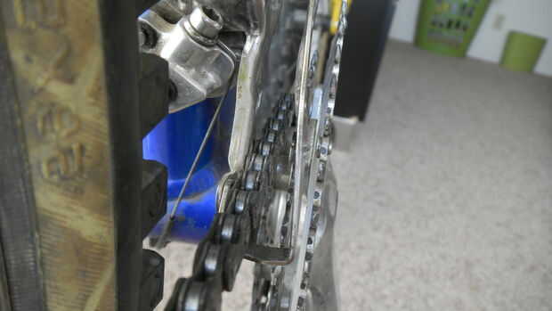 3. vista la brecha entre la placa interior de la jaula y la cadena. Debe ser aproximadamente de 1 mm. (ver foto quinto)
