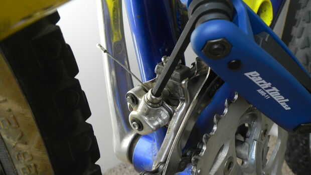 5. Si el tensor completamente o con ningún ajuste disponible entonces restablecer la tensión del alambre interno. Girar el tensor hasta el fondo. Cambiar el plato interno. Afloje el perno sujetador de alambre interno y tire suavemente del cable, apretar el perno del sujetador. Comience ajustando la tensión del alambre interno como se muestra arriba. (ver foto segunda y tercera)