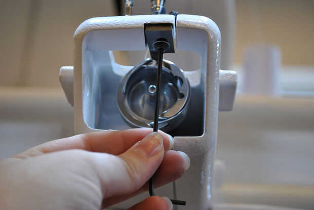 Le sugiero que Enhebre la máquina, inserte la canilla y ejecuta la rueda para hacer un stitcth en este momento para asegurarse de que tienes el gancho de la lanzadera y el pin correctamente alineada.