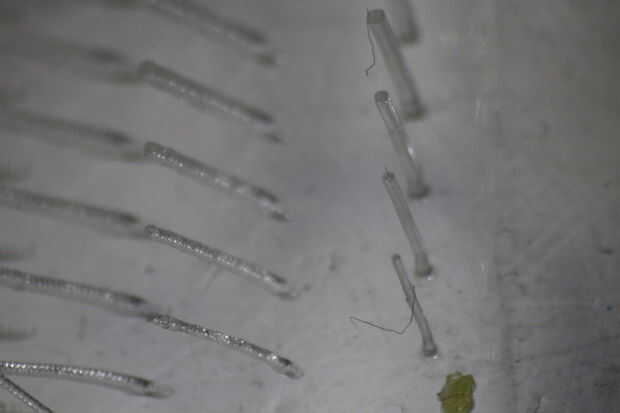 La desventaja es que rasgos negativos finos perdieron fácilmente si eran menores de 1 mm, sin embargo, como la foto muestra la x y resolución era todavía excelente de rasgos finos y fueron impresos mensajes 250 micrones de espesor.