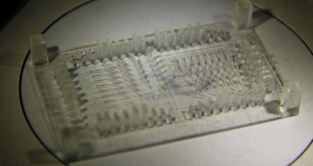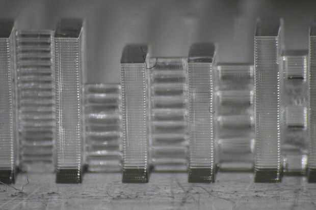 Esta resina era muy fácil de imprimir con, no había realmente ningún ajuste como la resina cura fácilmente sin interferencia con exposiciones entre 2.5 y 5.0 segundos para 25, 100 y 250 micrones paso tamaños. Poniendo todo en la máquina para hacer impresión tan rápidamente como sea posible, algunas de las impresiones fueron superior a 200 mm una hora utilizando pasos de 250 micras (17 mm es estándar con pasos PR48 y 25 micrones).