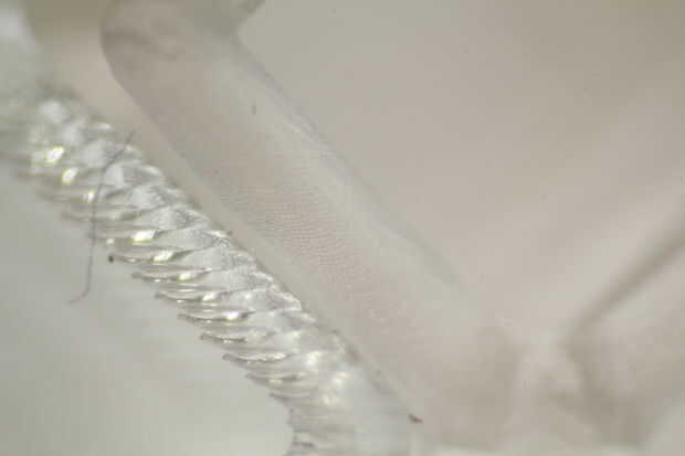 El espesor de la capa es uno de los parámetros más importantes. Resinas de impresión 3D típicamente incorporan componentes luz bloqueo para impedir el curado de material encima de la capa actualmente la impresión la impresora. En consecuencia, cuando se utiliza una resina diseñada para capas delgadas para imprimir capas más gruesas, la luz no puede penetrar lo suficiente en la resina que se adhieren a la capa anterior. Mientras que Autodesk estándar claro (PR48) está diseñado para capas gruesas de 25 micrones, capas de 100 micras pueden imprimirse con un tiempo de exposición. Capas más gruesas requieren una nueva resina.