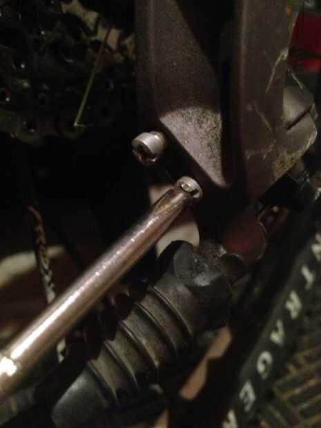 Versión salen los hilos límite "bajo" tan cerca de 4. Cambiar de puesto hacia abajo todo el camino. Entonces, usando la perilla de tensor de cadena o y Alan llave, tensar la cadena hasta que se encuentren en línea con la velocidad más baja. Una vez que esto está acabado, simplemente atornille en su límite de "baja" hasta que la cadena empiece a moverse. Esto será muy sutil, así que ten en cuenta. Una vez que vea la cadena mover, hacer retroceder el límite "bajo" Atornille una mitad de vuelta.