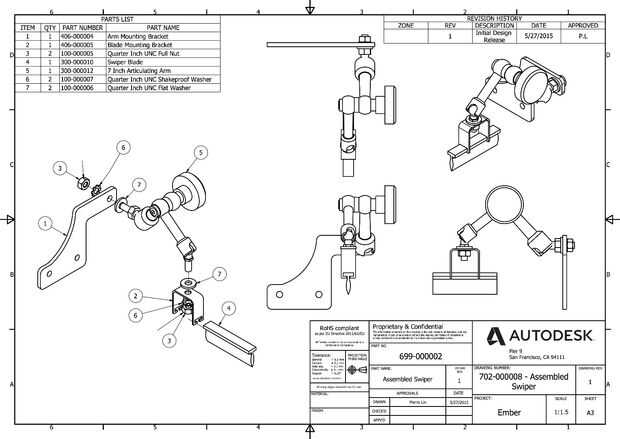Siga las instrucciones de montaje del control de dibujo. Asegúrese de que la Asamblea el 7" pulgadas de articulación brazo sobre el soporte de montaje del brazo en la orientación correcta.