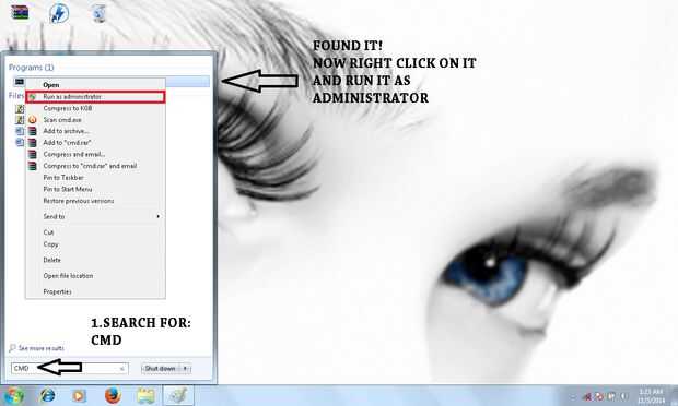 (usted puede hacerlo buscando un archivo cmd.exe y luego haga clic derecho sobre él y ejecutar como administrador)