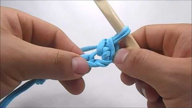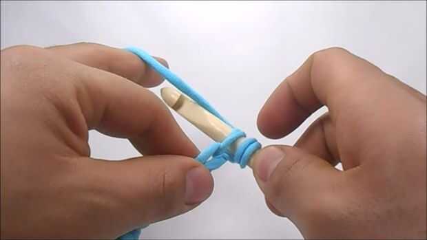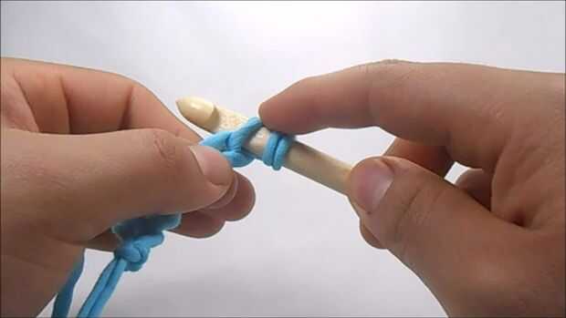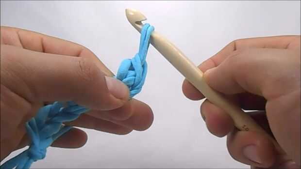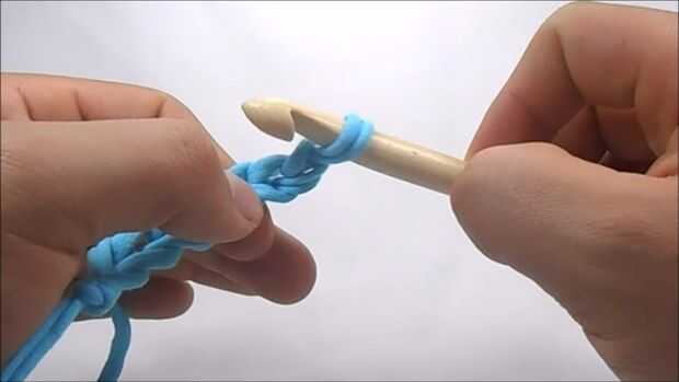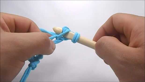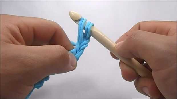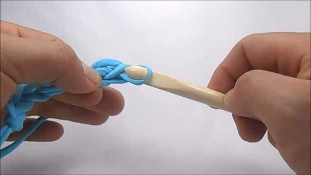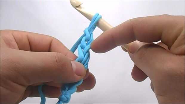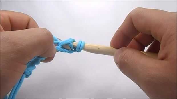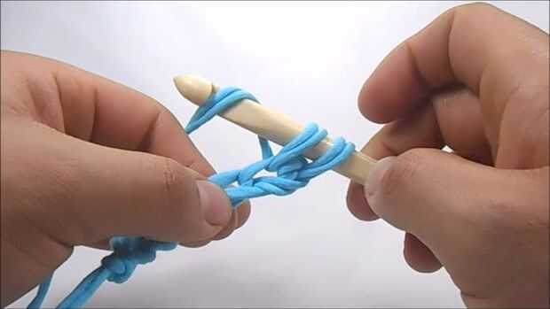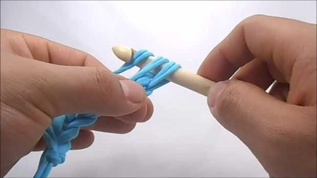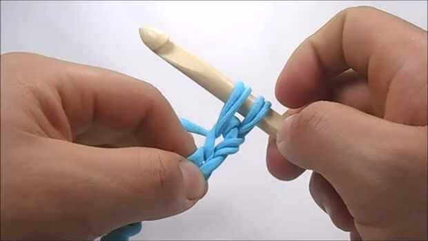 Y es en la segunda cadena de donde vamos a introducir ahora el gancho, hilo sobre, tirar el gancho a través de la cadena, (ahora tendrás dos lazos en el gancho) para terminar, hilado encima otra vez y tire del gancho a través de los dos lazos.