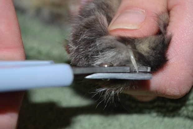 2) clip solamente las puntas afiladas para evitar corte rápido (tejido epitelial que protege el lecho ungueal). Si su gato ha color uñas no puede ser capaz de ver el rápido.