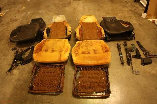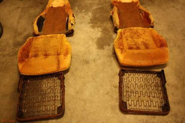 Estos asientos ha sido Virgen y ha abusado de los últimos 30 años. Me di cuenta de esto, porque al desmontar los asientos había un poco de moho y la espuma simplemente no soportar cualquier peso. También, utilizaron un montón de forros de coco sobre todo en la parte superior del asiento. Los tornillos atornillados en el chasis tenían loctite en ellas. Salir con despojarlos era un dolor. Con un poco de inteligente influencia y el peso corporal, que manejadas para poder salir.
