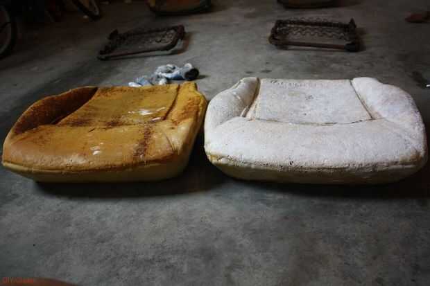 he investigado algunos sitios web, algunos afirman que la masilla de silicona pura en la espuma puede devolver su firmeza. Era un poco escéptico, pero bueno 10 bux es vale la pena intentarlo. No me ha sorprendido cuando este método no funcionó. Para ser honesto, la espuma consiguió un poco más firme, pero creo que el método de silicona funciona si la espuma no es tan vieja como la mía que es más de 30 años de edad. También, la espuma tenía ese olor realmente extraño que no podía ocultar la masilla sea. Así que decidido lo de la zanja y hacer mi propia espuma.