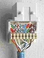 Esto es bastante fácil. Mayoría de los paneles de conexión y tomas tienen diagramas con los diagramas de color de alambre para las normas comunes de cableado T568A y T568B. Para ser honesto no sé si funcionaría bien. He visto "A" utilizado para ISDN antes pero, al mirar en la guía de colores T568B que reconocí como el mismo que las toneladas de cables de conexión que he hecho antes así que me fui con él. Asegúrese de que utilizar el mismo en ambos extremos. Puede utilizar el golpe hacia abajo de la herramienta o un pequeño destornillador para perforar los alambres individuales.