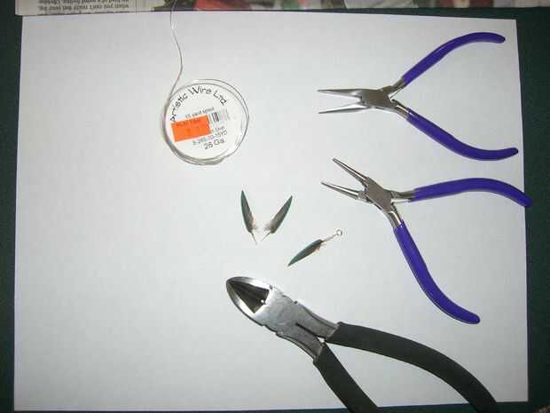 Realmente, podía hacer todo esto con un solo par de alicates, la clase consigue en una ferretería. Usted no podrá conseguir bucles perfectamente redondos, pero si no te importa la apariencia de un bucle square-ish, vaya para él (no tengo fotos de esto). También podría formar los lazos envolviendo el alambre alrededor de un palito, como un pincho de bambú; los alicates sólo ayudan a sostener el cable aún mientras envuelve.