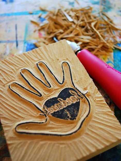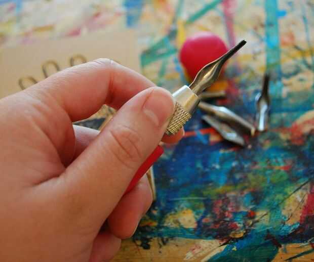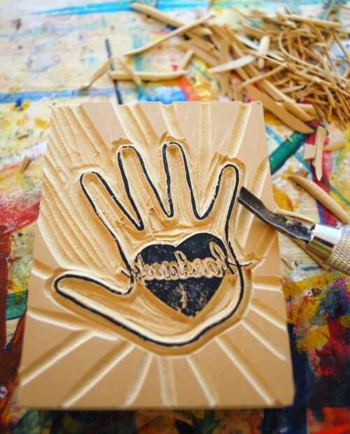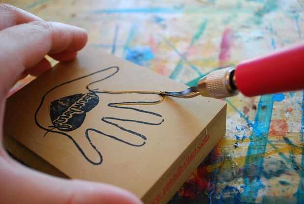 SEGURIDAD es PARAMOUNT - que va a utilizar una herramienta de filo aguda con fuerza. Utilice el mismo cuidado que lo haría con un cuchillo. Asegúrese de colocar siempre la mano que sostiene el bloque de linóleo de una manera que no será en la "línea de fuego" si (y cuando) su herramienta de talla se desliza apagado para que no corte usted mismo.