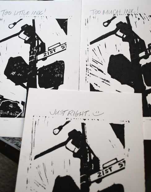 -Si las líneas finas de labrado llenan de tinta, intente les talla fuera un poco más, o aplicar una capa más fina de la tinta en el rodillo la próxima vez.
