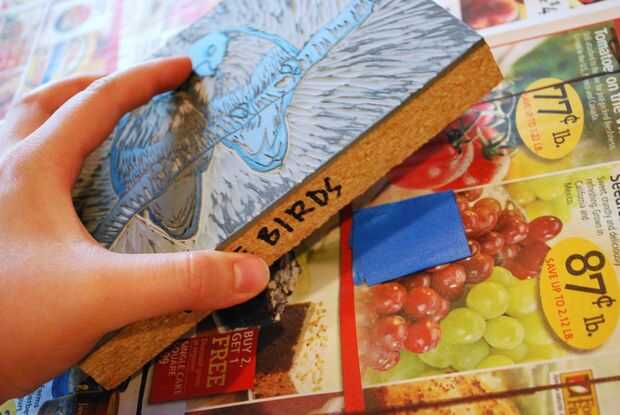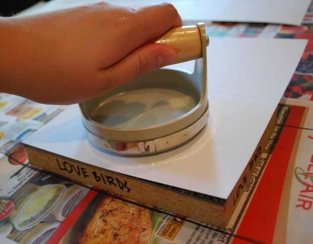 Lugar su papel o tela en el bloque de linóleo entintado y frotar la espalda de tela y papel con su estéril (o las manos o palote o libro o lo que proporcionará una presión uniforme sin que se doblen o rasgar la superficie de impresión) firmemente durante 15-30 segundos.