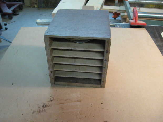 Esta es la primera que hice hace un año. Cuenta con 5 estantes (60, 80, 100, 150 y 220 Grit). He añadido otro estante para la nueva caja.
