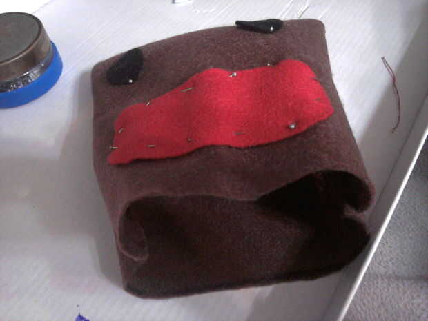 Lo que hice fue convertido el fieltro adentro hacia fuera y sew'd las piezas juntos.