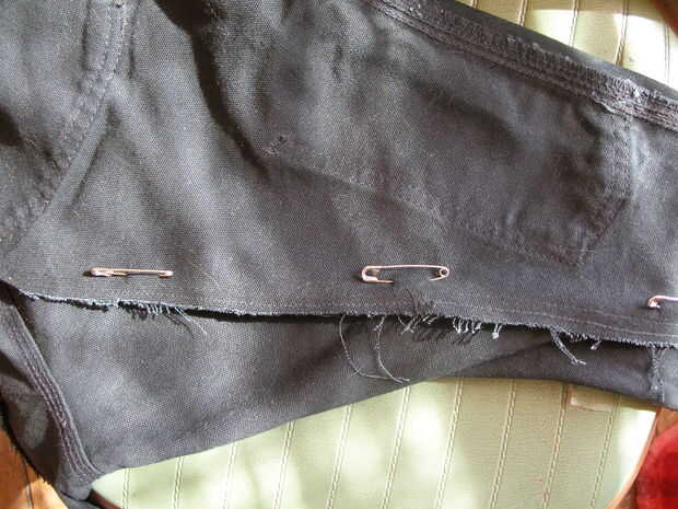 Los pantalones que estoy alterando ajuste en la cintura y glúteos, pero las patas eran demasiado flojas y bajaron demasiado. Así que tengo que tomar primero en las piernas y ellos les dobladillo. Cuando alterar mucho los pantalones vaqueros, he tenido el tiempo más fácil y más éxito desde que en la costura exterior. Sin embargo estas son triple costura plana, y desde la parte superior Ajuste lo suficientemente bien no quería tratar de mezclar un tipo de costura con el otro y terminan con los terrones donde se unen los puntos de sutura. Pellizcos del interior tiran el frente en una dirección extraña. Así que decidí crear una nueva costura y llevarlos la parte posterior de la pierna. Esto no es cómo los pantalones se hacen y probablemente no es cómo alteraría pantalones de lujo, pero resultó ser una forma efectiva de solucionar estos.