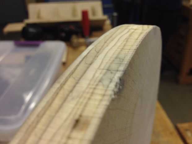 Finalizado el corte, moví la cabeza de chorro de agua lejos de la madera contrachapada y retirar las piezas. Algunas de las superficies de los cortes fueron más bien irregular y el corte obviamente fue redactado por unos grados (típicos de un chorro de agua). La superficie de la madera contrachapada fue bastante descolorida del proceso de chorro de agua.