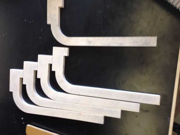 A continuación, lijar los bordes de cada pieza para eliminar el jaggedness del corte chorro de agua. Para las piernas, reprimieron cada pierna utiliza la madera unido al Banco de trabajo madera y luego mano lija cada pierna con un papel de grano bajo seguido de un papel de alto grano. Cada lado requerida aproximadamente 1-2 minutos de lijado.