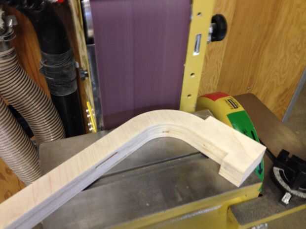 Luego utilicé una lijadora de banda para lijar los bordes curvados de las piernas y el asiento.